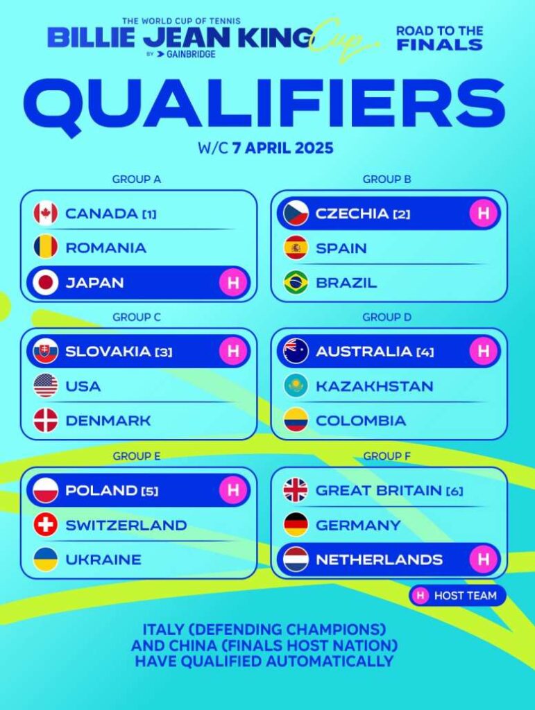 W piątek 11 kwietnia, również o godz. 15.00, rozpocznie się rywalizacja Polek z Ukrainkami, natomiast trzydniowy turniej zwieńczy w sobotę spotkanie ekip Szwajcarii i Ukrainy (również start o godz. 15.00). Tylko najlepsza z tych ekip awansuje do Billie Jean King Cup Finals, który po raz pierwszy zostanie rozegrany poza Europą.