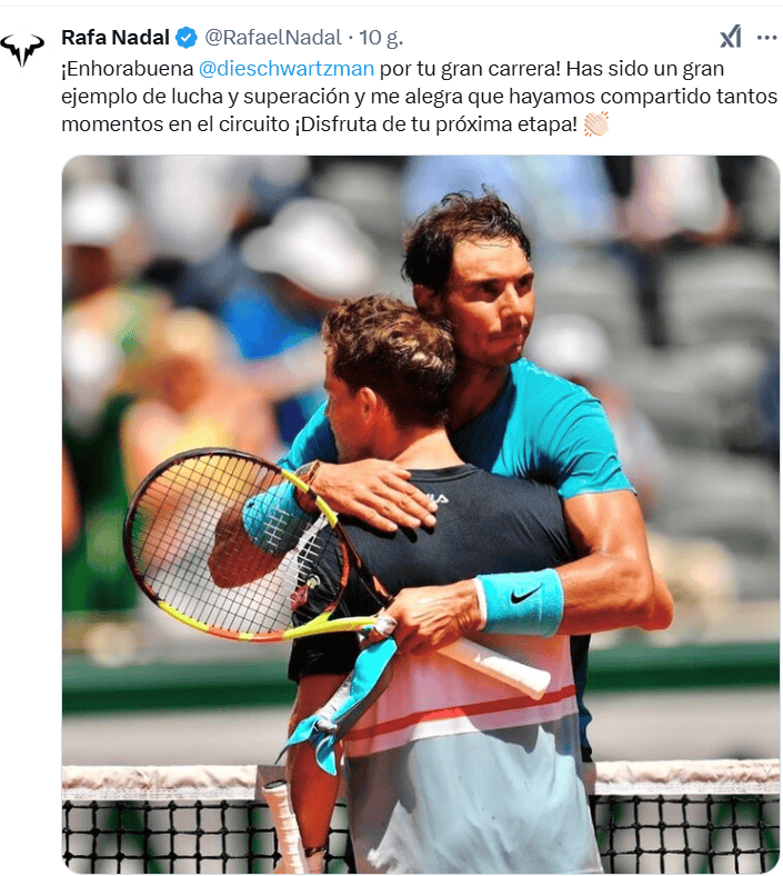 Wspaniałej kariery pogratulował Schwartzmanowi m. in. Rafael Nadal: „Gratuluję Diego wspaniałej kariery! Byłeś przykładem tego, jak walczyć i przezwyciężać samego siebie i cieszę się, że dzieliliśmy tak wiele chwil na torze. Powodzenia w kolejnym etapie Twojego życia!”