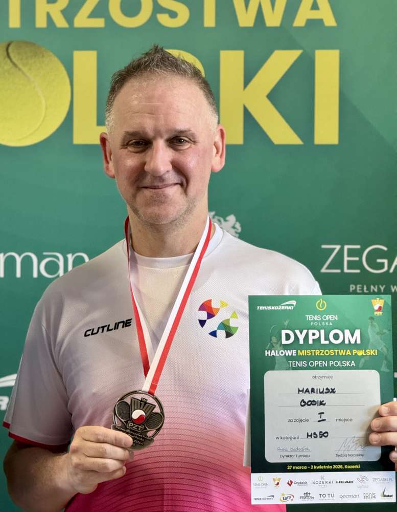 – Halowe Mistrzostwa Polski w Kozerkach to dla mnie wydarzenie szczególnie bliskie sercu. W 2025 roku zdobyliśmy tu z bratem (który musiał w tym roku z powodu grypy zostać w domu) wicemistrzostwo Polski w deblu w kat. 65+, a w tym roku mistrzostwo Polski w deblu z Bolkiem Dylewskim w kat. 70+ i wicemistrzostwo w singlu 70+. Łączę tu pasję do tenisa i fotografii, która pozwala zatrzymać ulotne chwile, dynamikę i emocje w ułamku sekundy. Kozerki to miejsce, do którego chętnie wracam – wspomina Bronisław Trzpis.