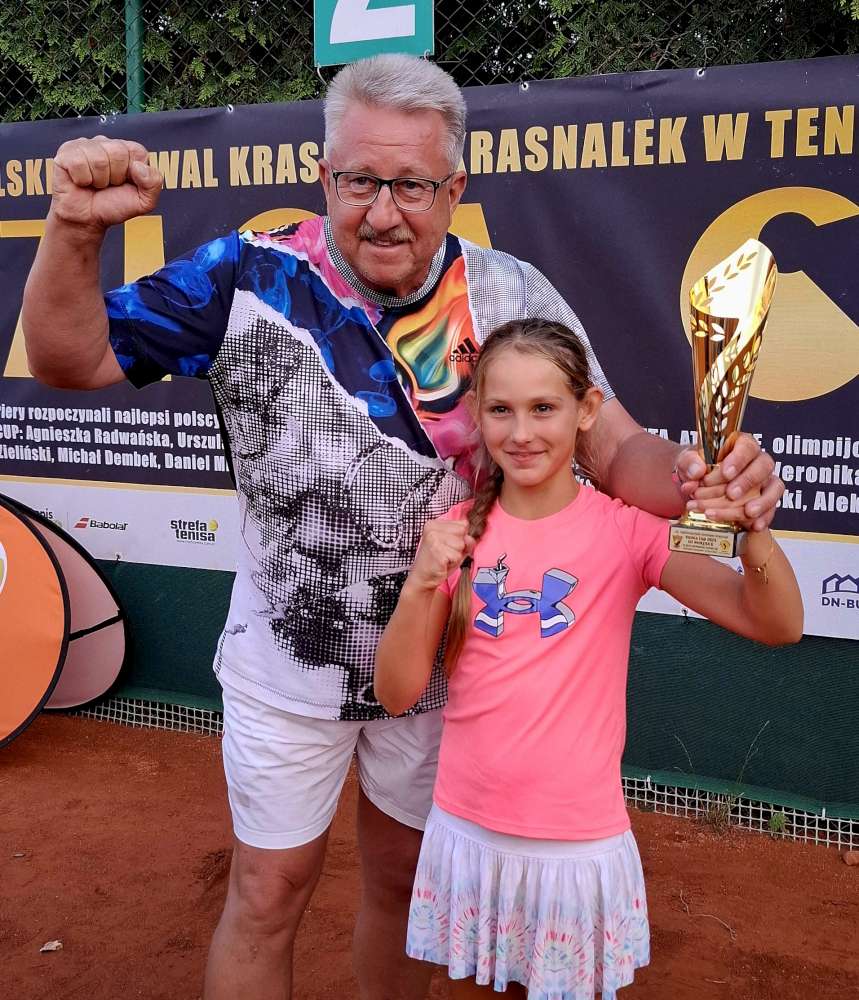 – swoją przygodę z tenisem rozpoczął w Szczawnie-Zdroju także jako 6-latek. Swe pierwsze kroki na korcie stawiał pod okiem swojego Taty Michała, dobrego tenisisty amatora. Potem poszedł już pod skrzydła trenerów Roberta Kosińskiego i Dominika Cebuli w KT Szczawno-Zdrój z którymi współpracuje do dziś. Prócz podwójnego tegorocznego triumfu na piotrkowskich kortach do swych najbardziej liczących się w jego karierze sukcesów na korcie zalicza: 1 miejsce w Masters Pho3nix Kids Cup U-10 w Poznaniu 2025, 2 miejsce w Kinder Trophy 2024 ECT Warszawa, 3 miejsce w Champions Bowl w Poreču w Chorwacji 2025, uczestnictwo w nieoficjalnych mistrzostwach świata 10-latków Smrikva Bowl 2025 i 2 singlowe zwycięstwa w WTK U-12. Jego tenisowym idolem jest Carlos Alcaraz.