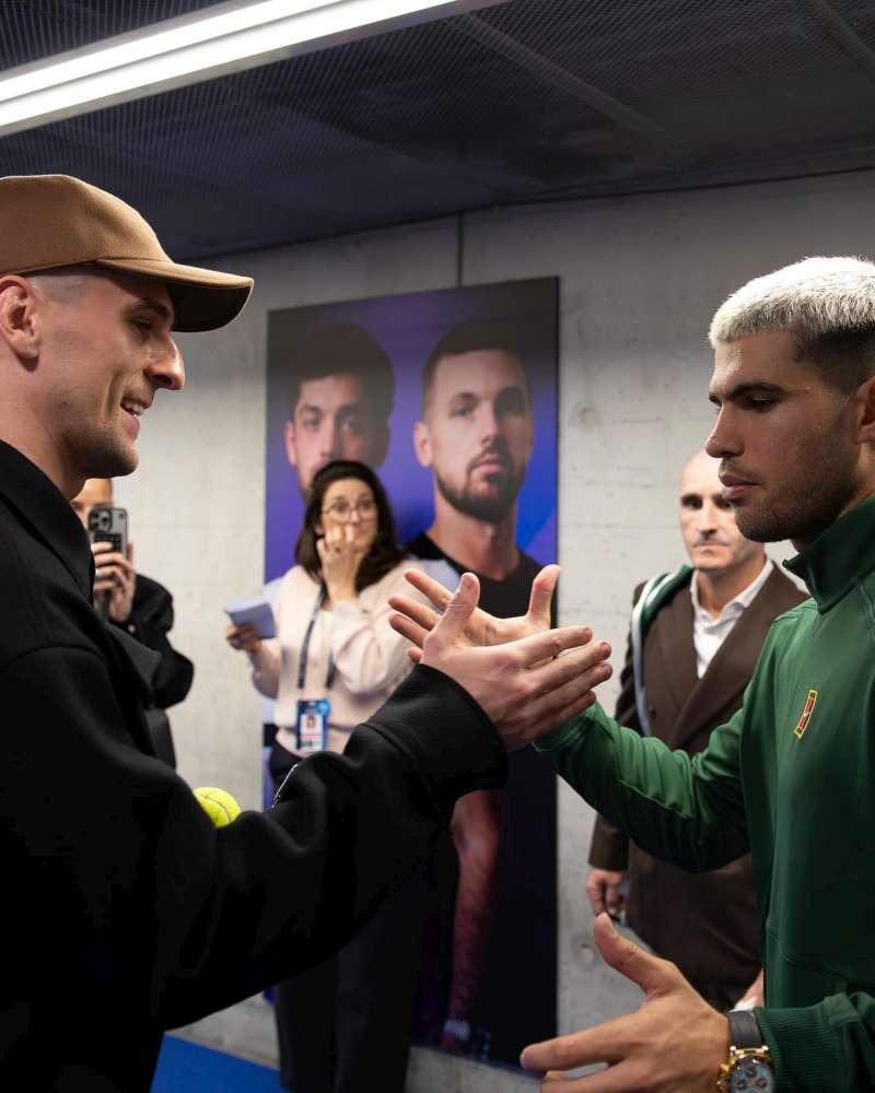W pojedynku Carlosa Alcaraza z Alexem de Minaurem bardzo interesujący był set otwarcia. Wyżej notowany Hiszpan prowadził w nim 4:1 z przewagą breaka lecz roztrwonił przewagę, a po rozstrzygającym set tie-breaku, to Alex de Minaur miał czego, żałować, gdyż prowadził 5:3, a przy wyniku 5;4 miał do dyspozycji serwis, by zdobywając dwa punkty w akcjach rozpoczynanych własnym podaniem, zwycięsko zamknąć pierwszą partię meczu. Australijczyk nie tylko tego nie uczynił, ale przegrał obie akcje, a na dodatek przegrał również następną wymianę już przy serwisie Hiszpana i piłce setowej dla Carlosa Alcaraza, w konsekwencji przegrywając cały set. W drugiej odsłonie pojedynku Carlos Alcaraz był już wyraźnie lepszy wygrywając drugi set pewnie 6:2 i tym samym cały trwający 102 minuty mecz 7:6 (5), 6;2. Set otwarcia trwał godzinę i cztery minuty, druga partia spotkania już tylko 33 minuty.