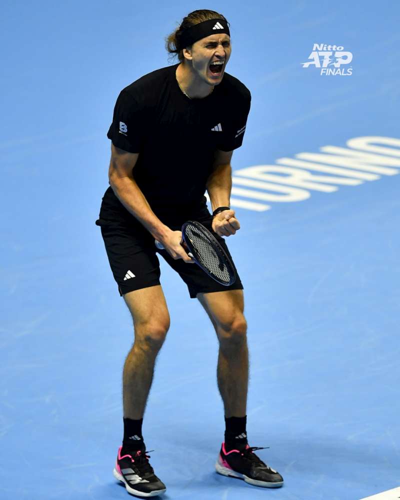 W drugim niedzielnym meczu gry pojedynczej podczas Nitto ATP Finals 2025, jedynym w grupie B (Bjoern Borg), trzeci w rankingu ATP niemiecki tenisista Alexander Zverev zmierzył się z Amerykaninem Benem Sheltonem (6. ATP) wygrywając w dwóch setach 6:3, 7:6 (6). Amerykanin miał wielkie szanse, żeby doprowadzić co najmniej do rozstrzygającego trzeciego seta, ale w tie-breaku drugiej partii meczu, od prowadzenia 6:3 przegrał pięć wymian z rzędu, nie wykorzystując trzech następujących bezpośrednio po sobie piłek setowych, w tym pierwszej i drugiej, mając do dyspozycji serwis. Także przegrywając już 6:7, przy piłce meczowej dla Alexandra Zvereva, 23-letni Ben Shelton serwował, lecz wymiana przyniosła mini break-point i decydujący punkt dla Zvereva.