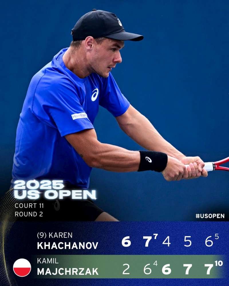 Kamil Majchrzak (76. ATP) wygrał w drugiej rundzie turnieju Wielkiego Szlema US Open 2025 z rosyjskim tenisistą Karenem Chaczanowem (9. ATP) po zaciętym, niesamowitym, trwającym cztery godziny i 34 minuty, pięciosetowym starciu – 2:6, 6:7 (4), 6:4, 7:5, 7:6 (10-5). Polakowi udał się więc rewanż za porażkę w czwartej rundzie The Championships Wimbledon 2025.